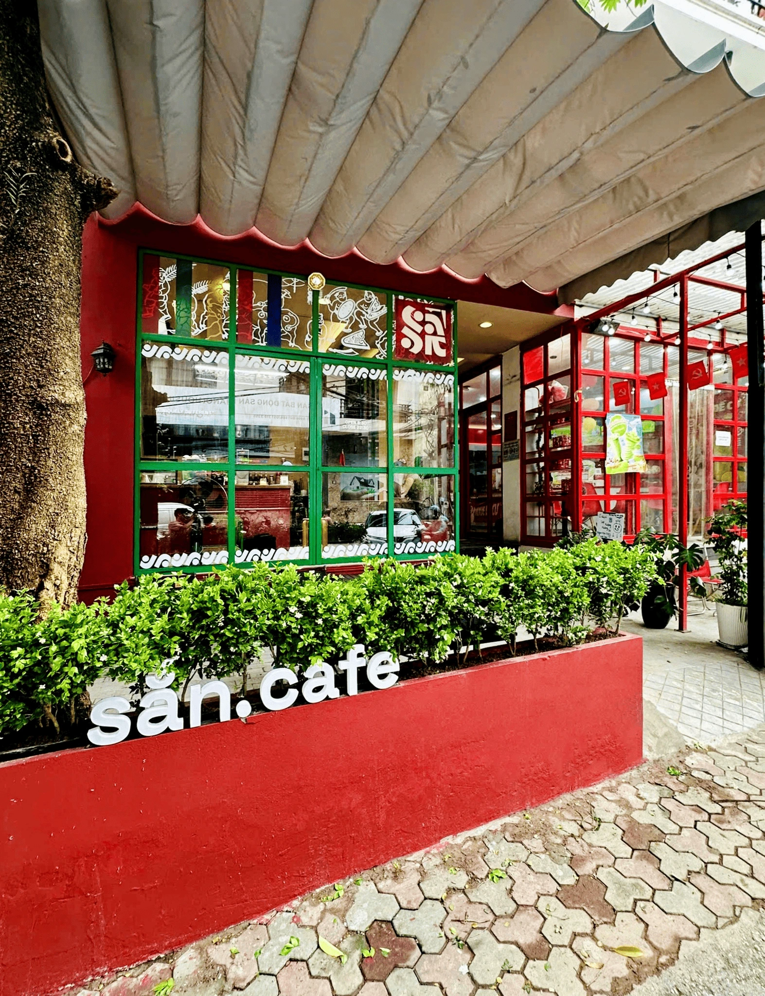 Mọi góc nhỏ tại sắn.cafe đều thấm đượm hơi thở của tranh Đông Hồ, từ những bức họa treo trần đến từng chi tiết nhỏ. Không gian tràn ngập ánh sáng tự nhiên, thiết kế tối giản nhưng vẫn giữ được nét truyền thống, gợi nhớ về những nếp nhà xưa.